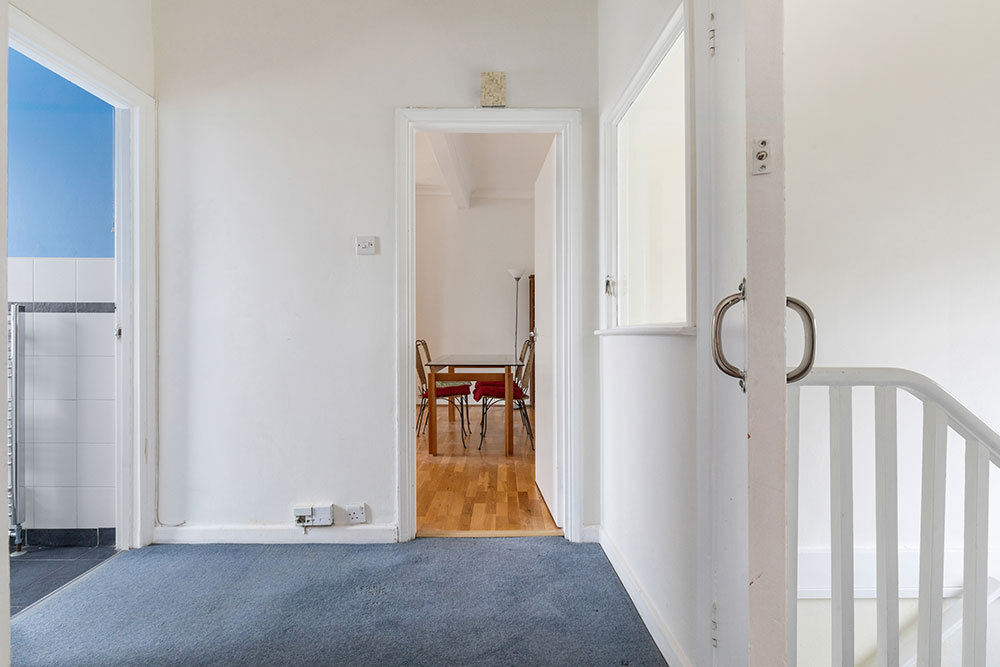 Tucked behind a charming gated front garden, entry is through a shared entrance into your private front door, downstairs corridor and staircase. At the top of the staircase and you are greeted by a bright, airy landing,  your first glimpse of what lies ahead.