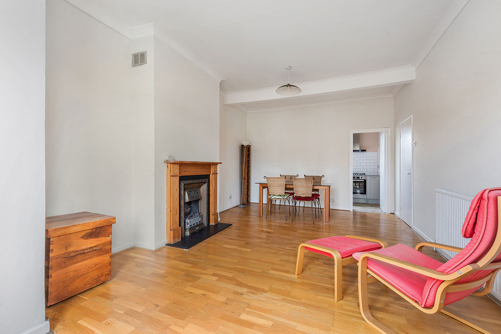 At the front of the property, you’ll find a 22 foot approx.  bay-fronted lounge, the living and dining area. Bathed in natural light and full of character, it’s the ideal setting to curl up with a good book, binge your latest series, or host dinner parties. A striking feature is the cast iron fireplace which adds timeless elegance to the space.