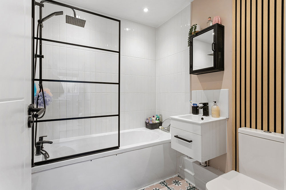 The stylishly designed bathroom suite provides the perfect setting to relax and unwind after a busy day, whether you prefer a soothing bath or a refreshing shower.