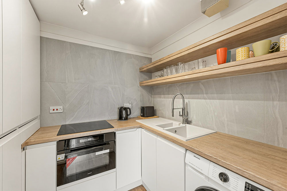 • Sleek fitted kitchen incl. integrated oven & hob