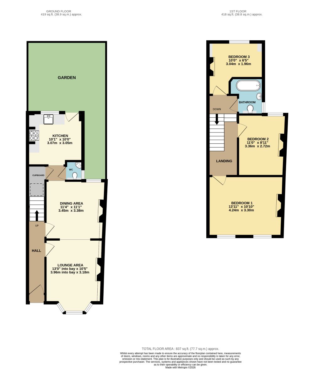 Disclaimer: (All measurements are approximate sizes and are given as a guide only as obstacles may have prevented accuracy)